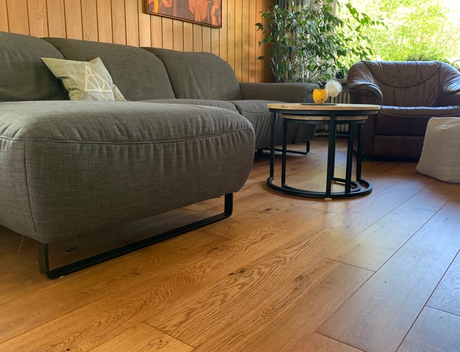 Dieser Boden hat den "Aha-Effekt". Auf den ersten Blick ein edler Holzboden. Auf dem zweiten Blick ein Augenmagnet, mit seinen unterschiedlichen Breiten.